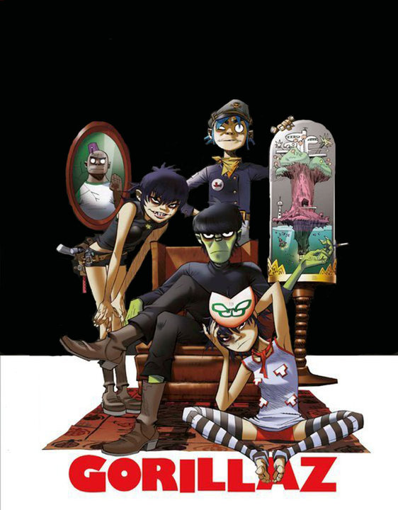 Gorillaz es una banda virtual conformada por sus cuatro integrantes ficticios de dibujos animados los cuales son: 2-D (voz y teclado), Noodle (voz y guitarra), Murdoc Niccals (bajo), Russel Hobbs (batería).